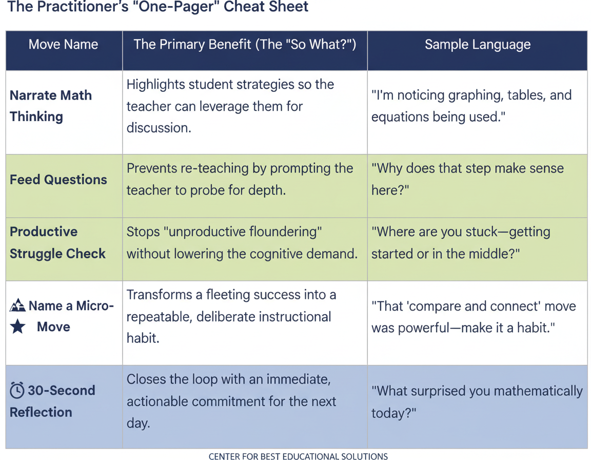 These three actions provide the clarity needed to execute five specific, high-leverage moves that improve student thinking without disrupting the lesson’s flow.